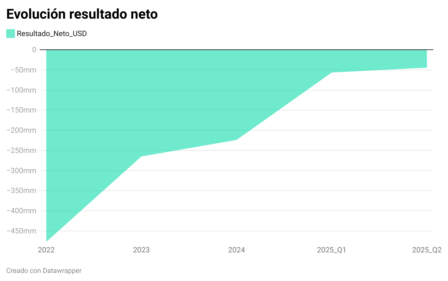 Los resultados de 2025 confirmaron la tendencia. El primer trimestre generó 118,9 millones de dólares de ingresos pero perdió 56,5 millones. En el segundo trimestre facturó 147,1 millones y perdió 44,5 millones, consumiendo 19,6 millones de caja operativa. La liquidez se desplomó; la compañía pasó de 95,8 millones en efectivo a sólo 20,8 a finales de 2024, y buena parte era caja restringida para cubrir depósitos y garantías. Con ese nivel de quema de efectivo, cualquier imprevisto podía ser letal.